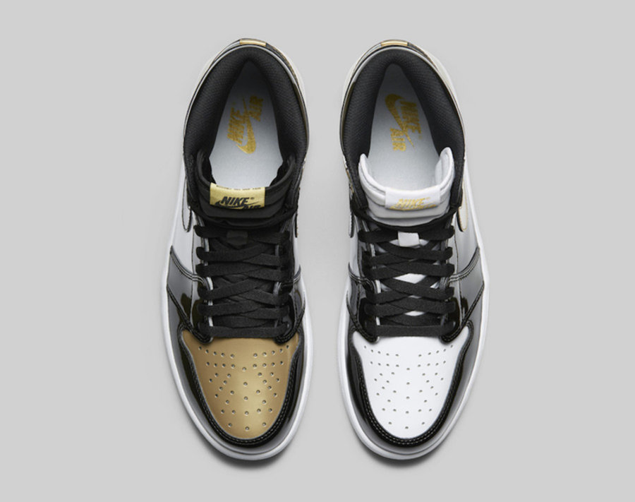 整体配色设计方案与去年登场的 Air Jordan 1 “Top3” 如出一辙,颜色搭配改以黑白金三色示人,并注入漆皮材质提升质感,显得更加高调奢华,吸睛指数极高!