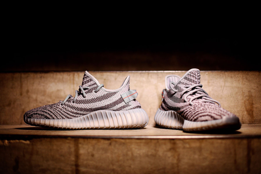 相比于首发 Beluga 配色,本次新灰橙 Yeezy Boost 350 V2 依旧搭配辨识度极高的斑马纹理,鞋身侧边油漆条则以同样灰色系呈现,SPLY-350 字样却反转为亮橙示人,少了一份张扬,整体色调更为统一,人气同样不低。