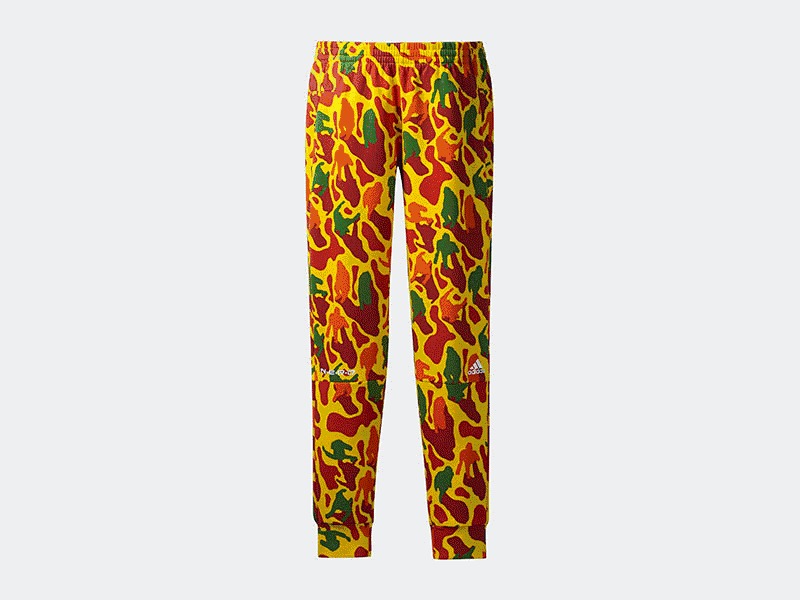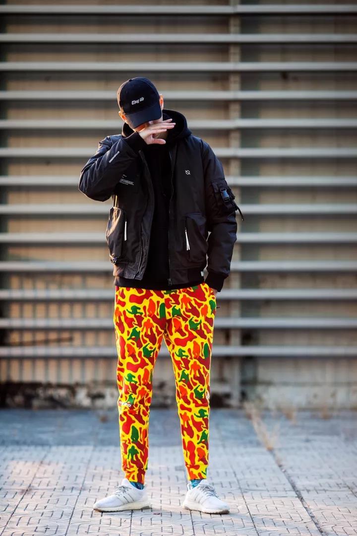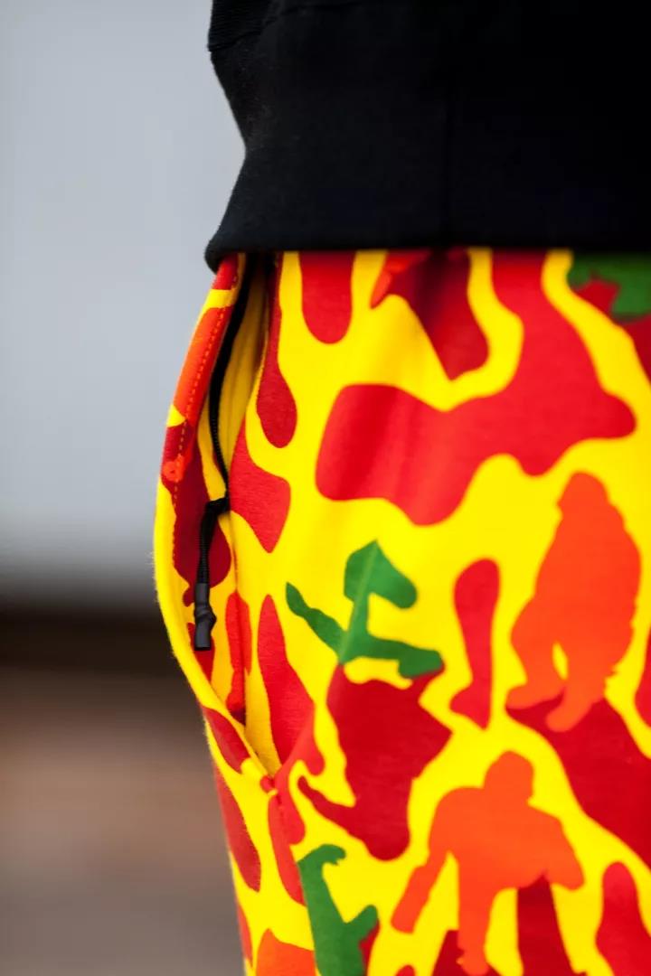 这条运动裤由黄红绿色调打造,亮眼指数只能用 “爆表” 来形容了!