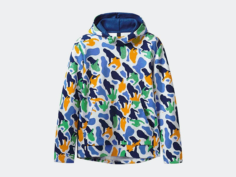 特别邀请的韩国设计师 Buzcha.J 打造的迷彩印花图案,由八种别具一格的鲜明色彩组合而成。