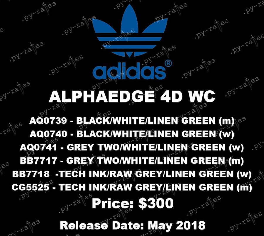 而关于 4D 跑鞋我们何时能够入手,目前也有了让人欣喜的眉目。从爆料账号 pyrates 释出照片中看,全新进化鞋型 adidas Alphaedge 4D WC 将在明年 5 月登场,带来三种配色男女款均有的大规模市售。