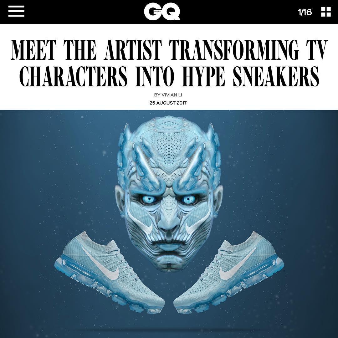 凭借着这些奇思妙想,插画小哥自然收获了极高的知名度,NBA 球星尼克·杨都对其作品喜爱有加,著名时尚杂志 GQ 也对他的作品有过报道。