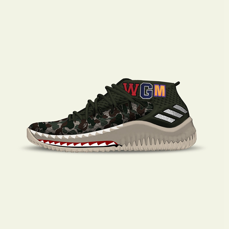 传闻明年全明星期间还将会推出实战鞋 BAPE x adidas DAME 4,猿人迷彩加上鲨鱼元素,堪称最潮实战鞋!