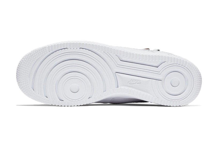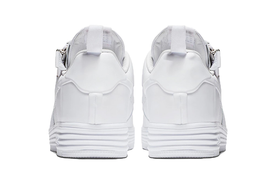 以彻头彻尾的 Triple White 纯白装扮呈现,依然是基于低帮的 Lunar Force 1 植入机能拉链,带来极高的辨识度,和极强的视觉冲击效果。