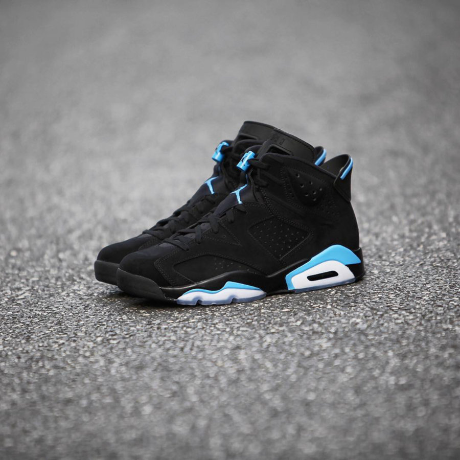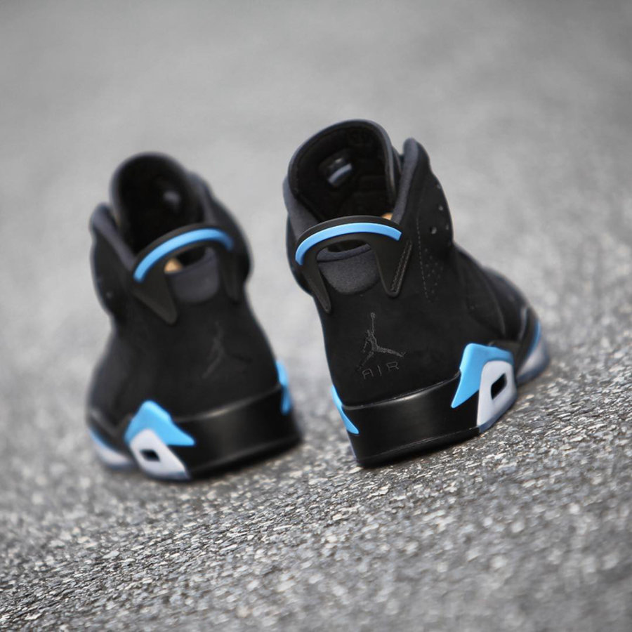 在延续 Air Jordan 6 经典鞋型轮廓的同时,采用一席黑色优质皮革覆盖全身,辅以清爽的北卡蓝色装扮点缀细节,依旧搭载半透明水晶大底。整体造型低调沉稳又不失帅气,上脚效果必定不俗!