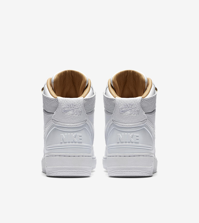全新鞋款融入 AF-1、AF-2 和 AF-3 三双鞋的设计细节,整体使用大面积的白色为主调,鞋面及内衬均采用上乘皮革材质打造不同纹理,鞋带牌、后跟以及鞋舌都有 Just Don 字样呈现,鞋身细节中还加入金色点缀,鞋款气质极为奢华。