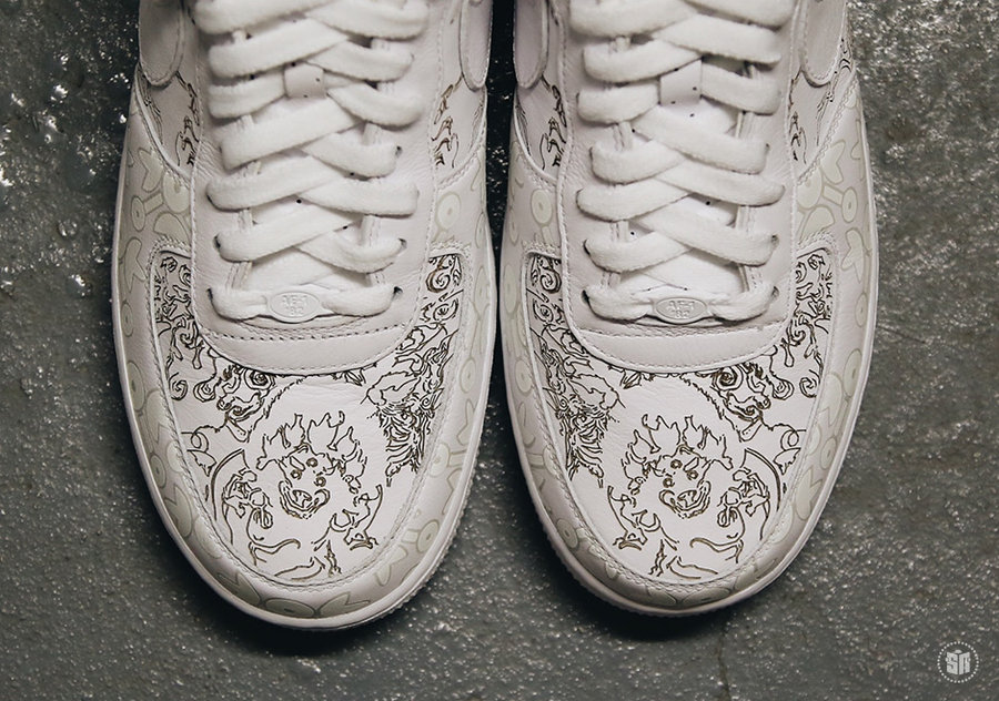 即将来到 2018 年,生肖系列依然轮回延续,承袭当年让人惊艳的全身镭射花纹、民俗图腾、人造兽毛以及醒目的 “獒” 字装扮,改以 Air Force 1 更为传统的白色呈现,少了一分霸气,却精致依然不减当年。唯一的彩色部位也暗藏玄机,转到纯白外底,4 种色调对应 2006 年配色主题,致敬以为极为浓厚!