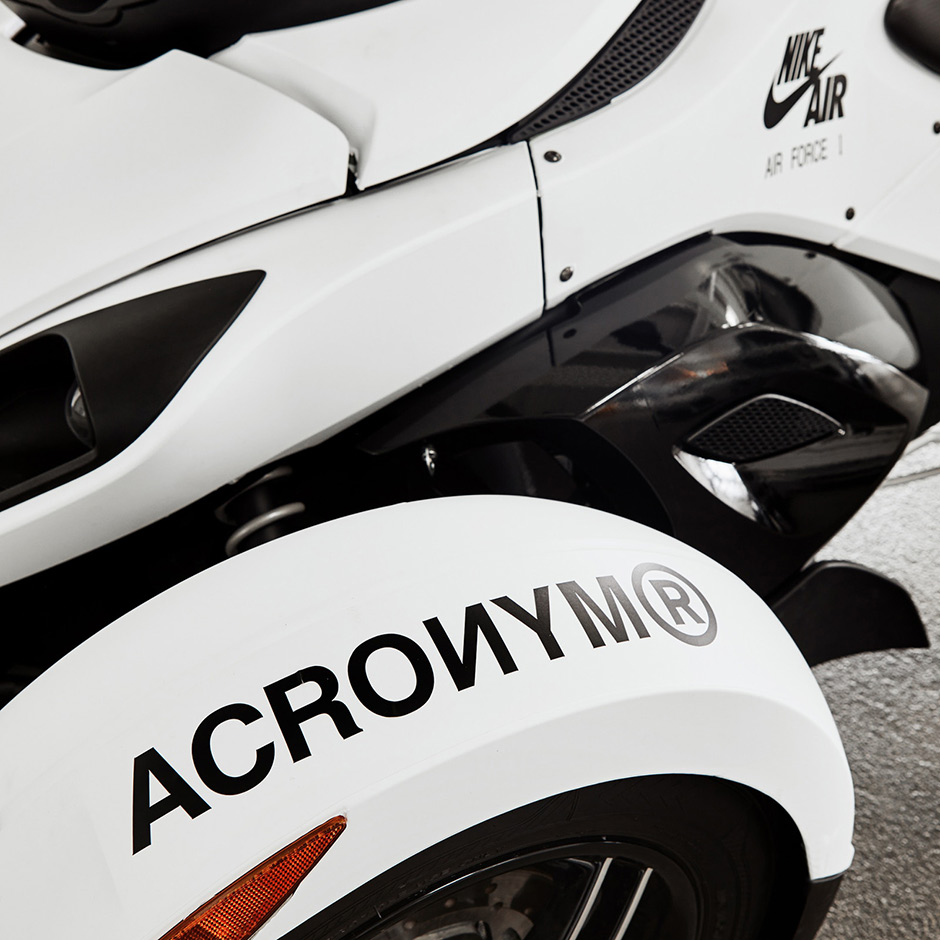 在纯白基调下,奔驰 G63、庞巴迪 Can-Am Spyder、兰博基尼 Aventador、赛斯纳私人飞机分别以 Just Don、ACRONYM、Travis Scott、Roc-A-Fella 设计元素置于鞋身之上,黑白间的明暗对撞,极具视觉冲击!