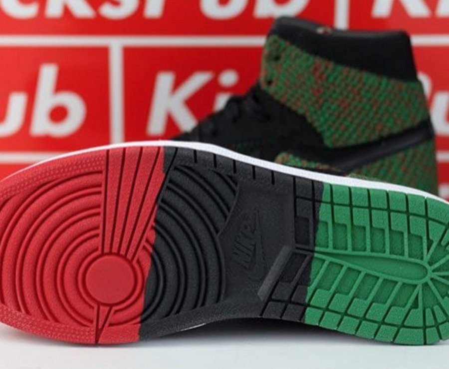 近日网上全新曝光出一双 Air Jordan 1 Flyknit “BHM”,可以看出明年的黑人月配色以红、绿、黑三色为主题。鞋头部位以红色覆盖,而后跟则使用绿色,鞋舌细节同样以三色填充,而内侧金色 “BHM” Logo 彰显了黑人月配色身份。