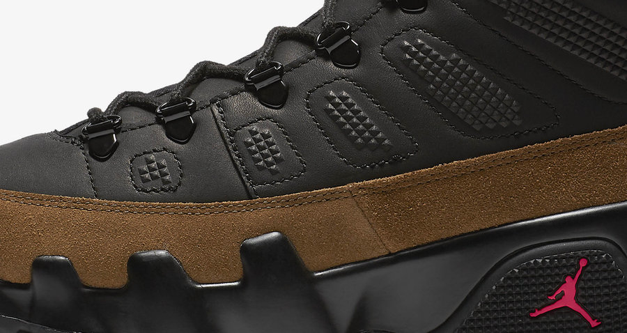 将 Air Jordan 9 古典造型注入现代户外元素,明早 Nike.com 带来两双更适宜冬季穿着的靴型 Air Jordan 9 Boot NRG。 由 Nike 经典作战靴 SFB 吸取灵感,分别采用橄榄绿 Olive 和黑生胶呈现鞋身,金属鞋带扣环、防水涂层鞋面、加厚内衬以及全天候锯齿大底,让它全副武装,不仅造型硬朗霸气,更能抵御恶劣天气。 明早 9 点 Nike.com 正式发售,目前入手地址已出 黑/橄榄绿、黑/生胶,定价 ¥1599 RMB。