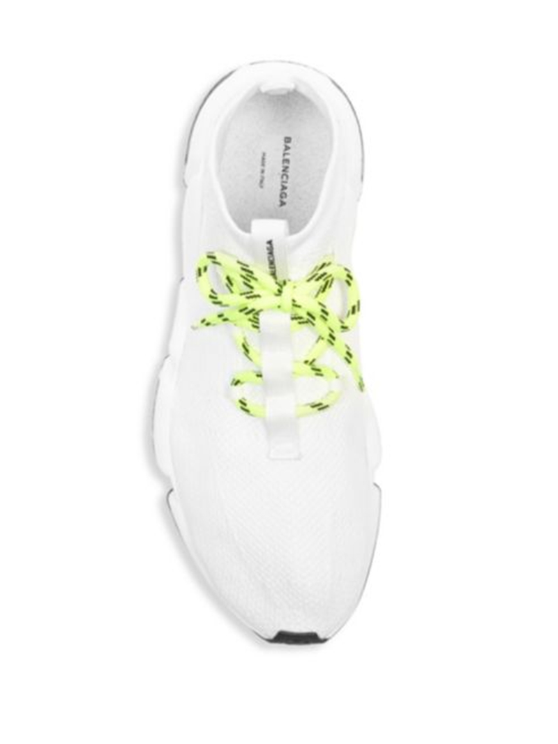 虽然全新复古鞋 Triple S 如今风头正旺,但法国时尚品牌 Balenciaga 依旧没有忘了前卫套袜鞋款 Speed Trainer,继早前推出多款人气配色后,此番又迎来一款全新配色亮相。 本次以轻便灵活的中帮造型示人,采用纯白网眼鞋面结合荧光绿色鞋带呈现,搭配一抹黑色大底收尾,营造出别具一格的清爽活力气息! 目前这款全新配色已经登陆 Saks 线上店铺进行预售,定价为 $732 美元,并将于明年 3 月正式上架发售。