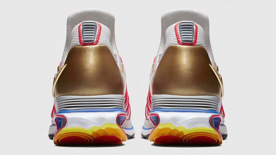 Shox VC 系列是 Nike 为卡特推出的经典签名球鞋,而核心的 Shox 气柱缓震令人印象深刻! 如今,Nike 将再次启动 Shox 科技,在进行提升后将推出 Nike Shox Gravity! 前卫的鞋身造型搭配 Shox 缓震科技,白色基础上添加红、蓝、金等多色细节,极具未来感的鞋带系统也让人大开眼界。 全新鞋款定义为休闲跑鞋,将于明年发售,具体性能与穿着感受令人期待!