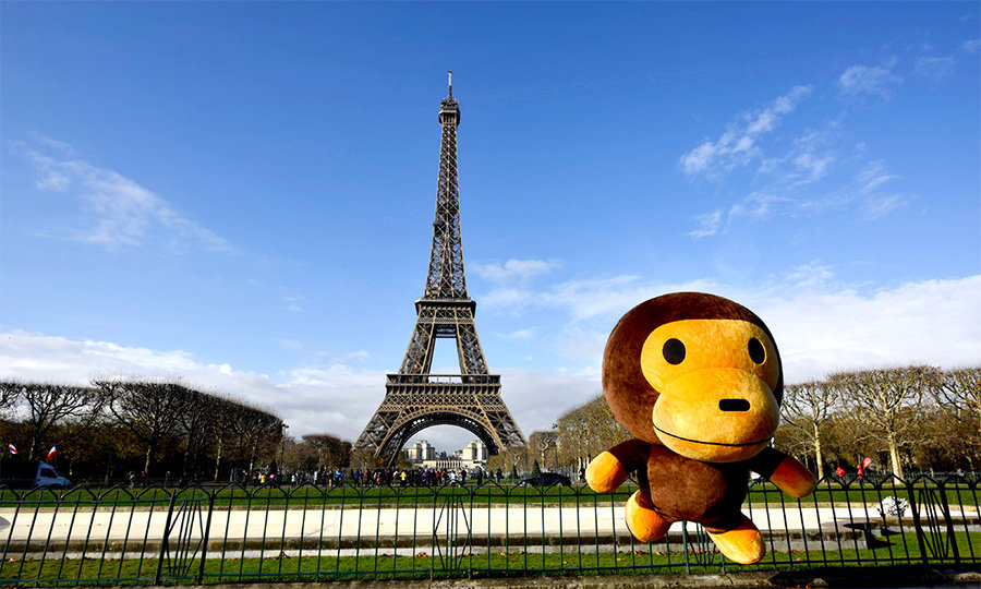 可爱有趣的 BABY MILO® 也随行开启了巴黎之旅,造访了巴黎凯旋门、埃菲尔铁塔、卢浮宫和圣心大教堂等地标,还同 BAPE STORE® 门前排队的各位粉丝进行了合影留念。
