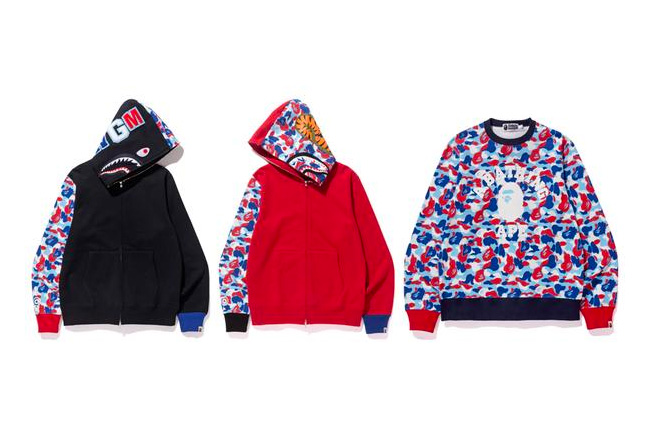 BAPE® PARIS 系列包含了鲨鱼帽衫、T 恤、卫衣、裤装,另外还有一款特别打造的帽款。于巴黎店铺开业的当天发售,而中国地区以及全球其他的 BAPE STORE® 将于 12 月 10 日正式上架。