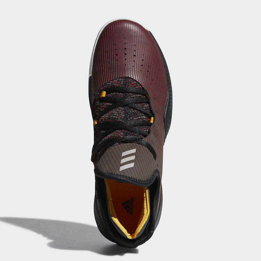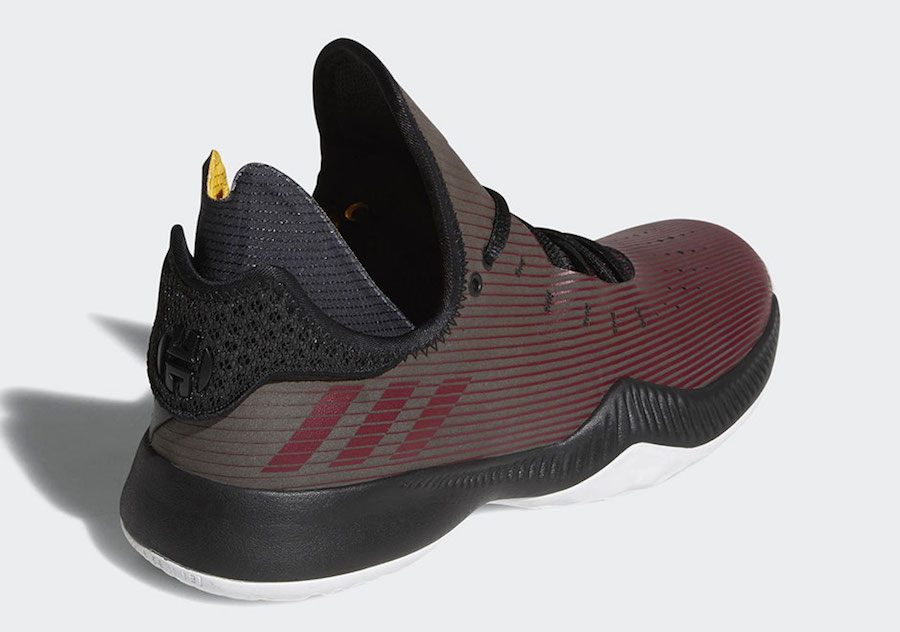 鞋款设计与 Harden Vol. 1 颇有几分相似之处,同样以低帮造型示人,但鞋面材质截然不同,同时在增加了内靴的设计,酒红色渐变鞋面与黑色搭配,其中加入黄色点缀提升辨识度。外底设计完全相同,但中底部分却没有搭载 Boost 缓震,看来鞋款将定位于中端实战鞋。