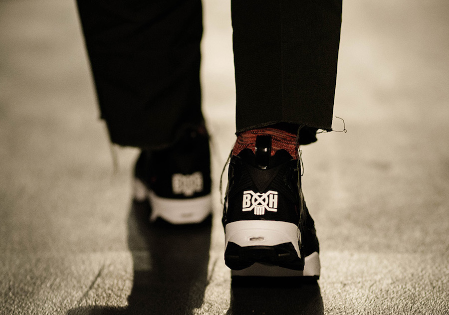 本次选用人气鞋型 Insta Pump Fury 为设计蓝本,以 Bounty Hunter 标志性的 “Sameru-Kun” 鲨鱼玩偶作为设计灵感,采用百搭的黑白撞色为主基调,最大的亮点在于鞋头处的鲨鱼锯齿图案,十分引人注目!