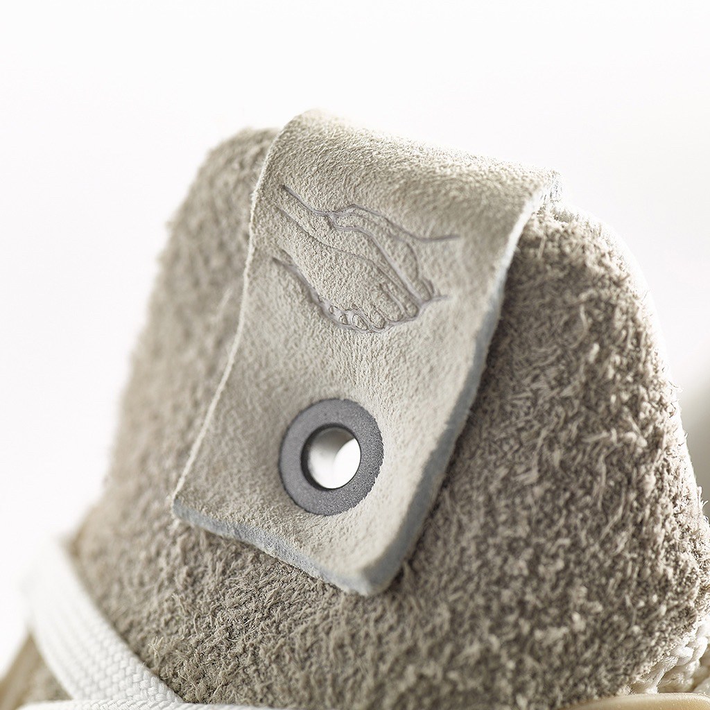 该款的 Primeknit 编织鞋面以浅卡其色为主调,细节则加入深灰、浅灰和浅褐多色点缀搭配,整体颜色的选择显得极为简约高档,而少量麂皮的加入再次提升了整体的质感。