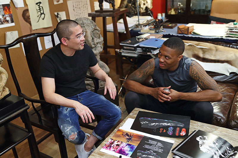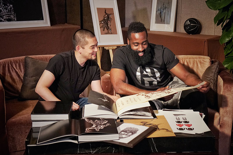 不同于以往国外设计师操刀主创,本次 adidas Basketball 特别邀请著名雕塑家任哲,以更贴近国人的艺术视角,传递新年主题。而本次 CNY 系列从筹备到实现历时一年多,哈登、利拉德、罗斯中国行均前往任哲工作室一同探讨设计。