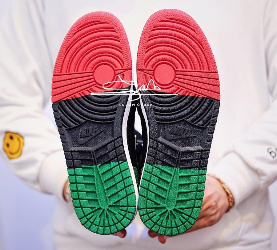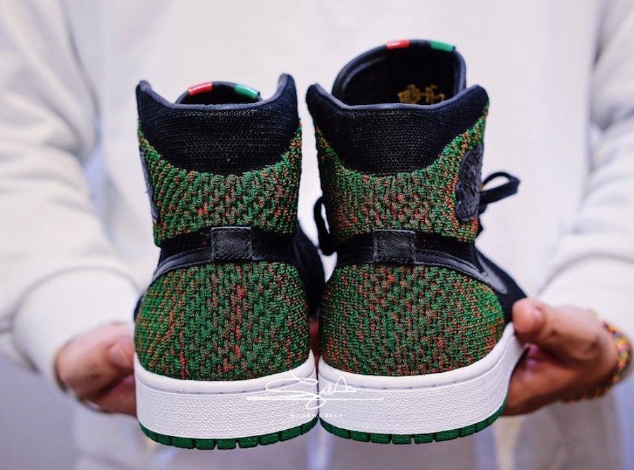 此前有过曝光的 Air Jordan 1 Flyknit “BHM” 近日又有实物美图释出,可以看出明年的黑人月配色以红、绿、黑三色为主题。鞋头部位以红色覆盖,而后跟则使用绿色,鞋舌细节同样以三色填充,而内侧金色 “BHM” Logo 彰显了黑人月配色身份。