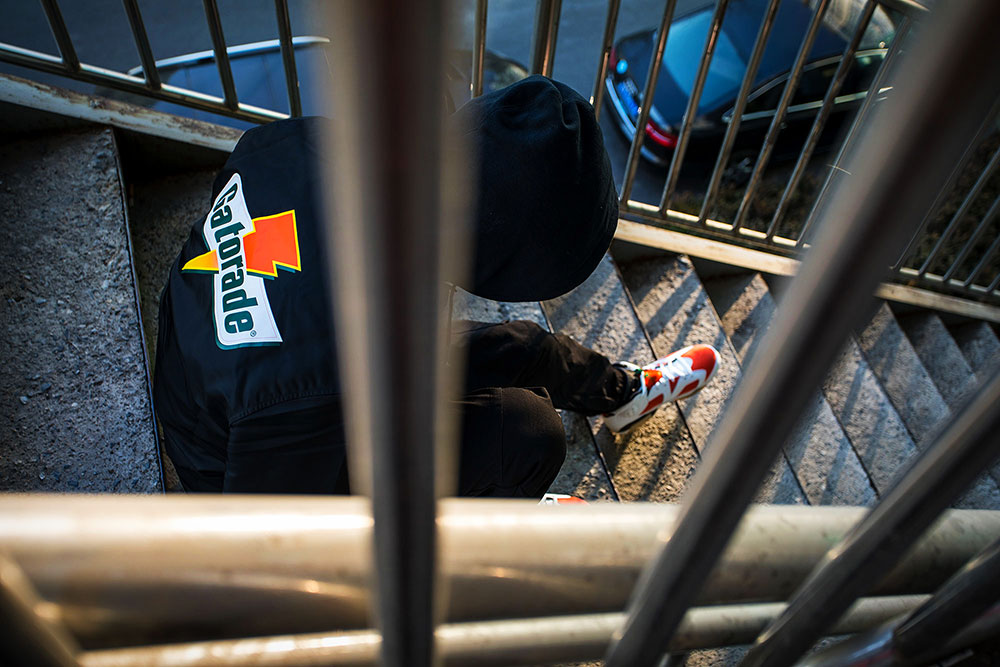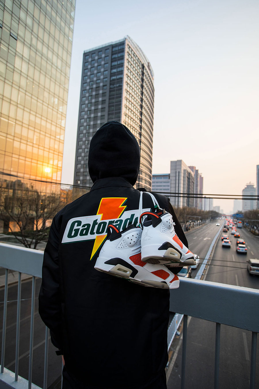 鞋带扣印有 Jumpman 与佳得乐闪电 Logo