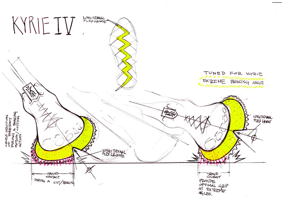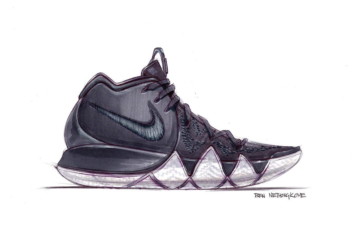 设计师 Benjamin Nethongkome 主导了这次新鞋的设计,适应欧文的风格是 Kyrie 系列设计的基础。之前每一代鞋款的设计理念都在进化:适应他的动态变向能力,让球鞋侧壁成为整个抓地系统中的一部分以及重新定义了篮球场上如履平地的概念。