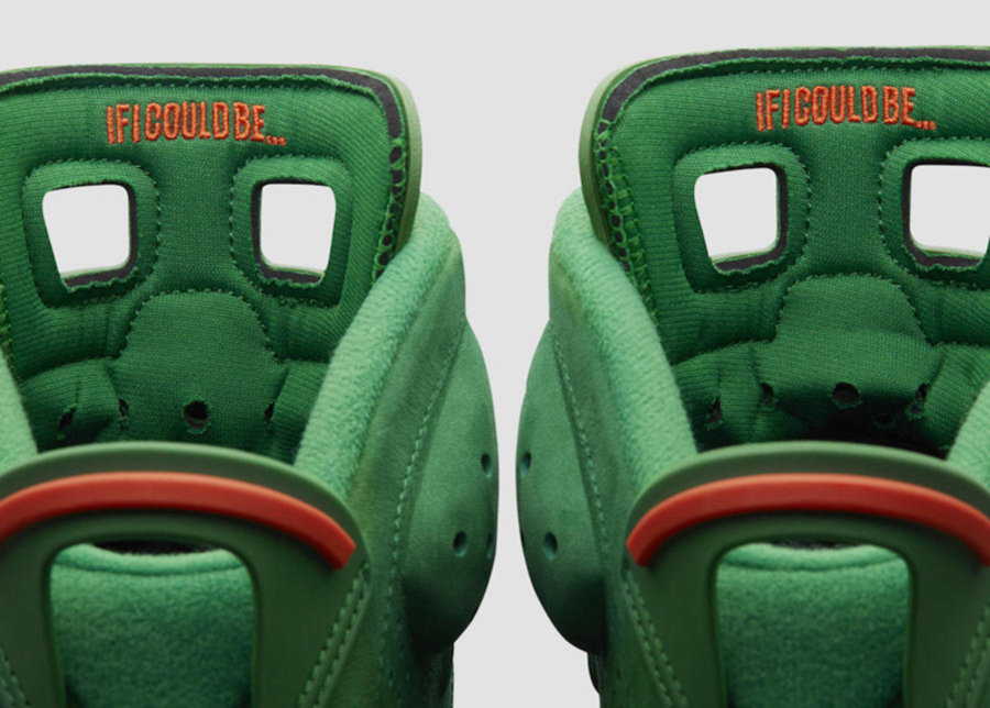 另外一款 Air Jordan 6 “Gatorade Green Suede” 的关注度同样不低,采用醒目的绿色装扮为主基调,鞋身使用质感极佳的麂皮材质打造,鞋扣闪电标志、中底、后跟等细节搭配橙色点缀,将佳得乐饮料的颜色完美搭配,相比白橙配色辨识度更高!