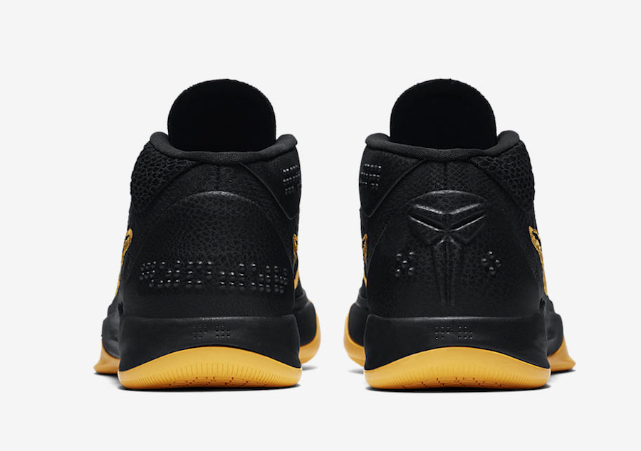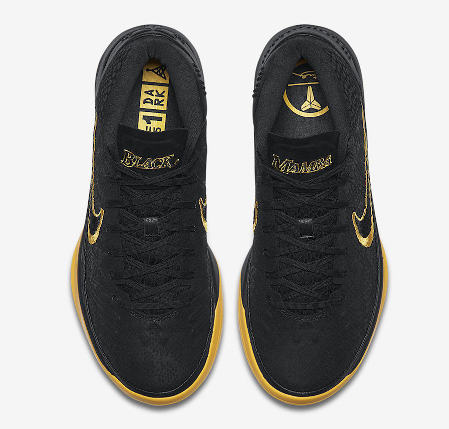 采用熟悉的黑黄装扮为主题,鞋面以黑色反光鳞片打造,鞋身 Swoosh Logo 则以黄色刺绣包边点缀,鞋舌缀有 “Black Mamba” 字样呈现,直击科比本人 “黑曼巴” 主题,致敬意味浓厚!