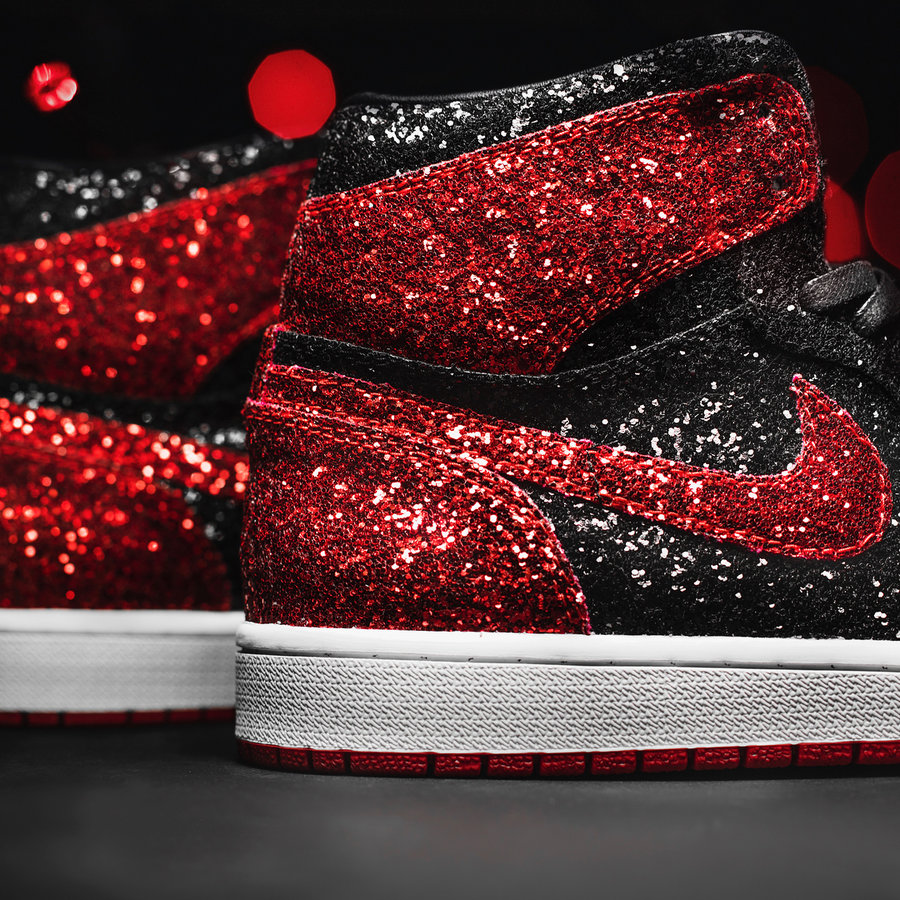 洛杉矶球鞋客制单位 The Shoe Surgeon 向来以惊艳的材质用料所被人熟知,近日一款圣诞主题 Air Jordan 1 再次印证了他们的实力! 采用最具辨识度的黑红呈现,内里选用小山羊皮打造,鞋身镶满水晶亮片,营造出浓浓的圣诞节日气氛,华丽表现让人过目不忘! 将在美国 12 月 25 日当天限量发行 100 双,每双定价高达 $1000 美元,约合 ¥6500 RMB。
