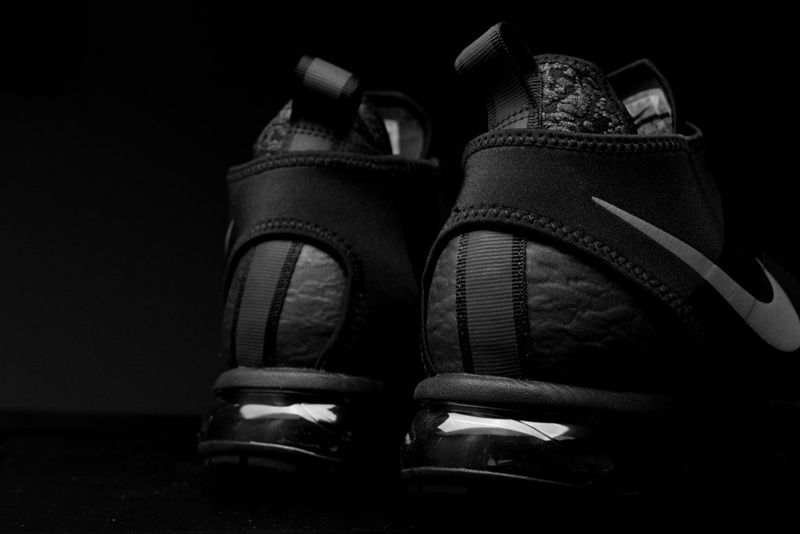 鞋款整体以黑色为主调,设计改为全新的高帮造型,鞋面采用全新的编织材质结合优质皮革打造,鞋身加入绑带框架设计,最后搭载 VaporMax 气垫,带来机能感十足的新鲜视觉感受!