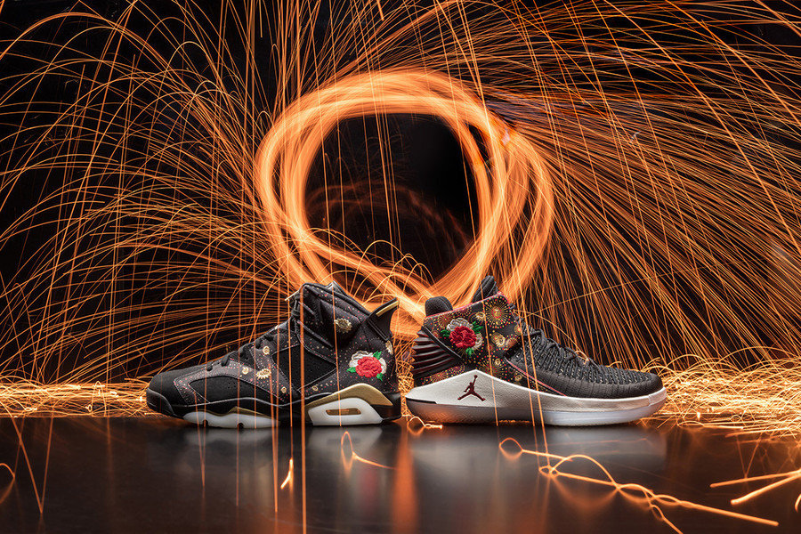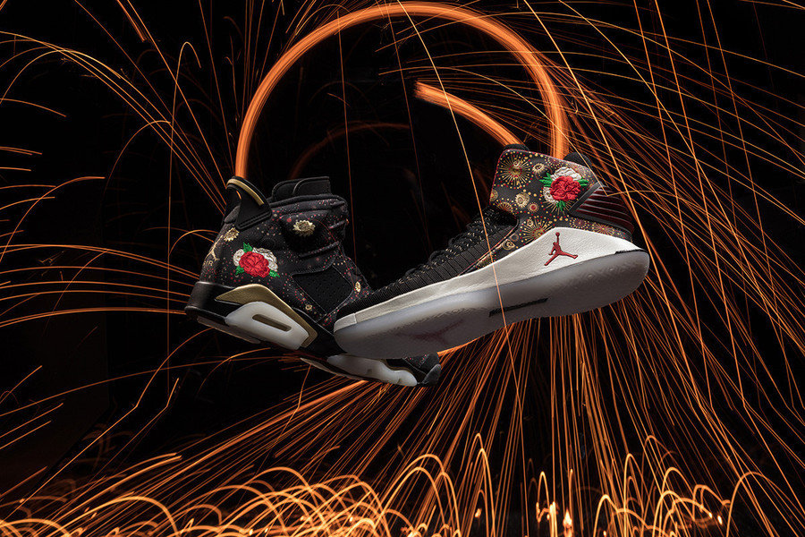此次挑选了经典的 Air Jordan 6 与最新科技 Air Jordan 32 进行渲染,以中国春节最具代表性的烟花为设计灵感,象征着着辞旧迎新!