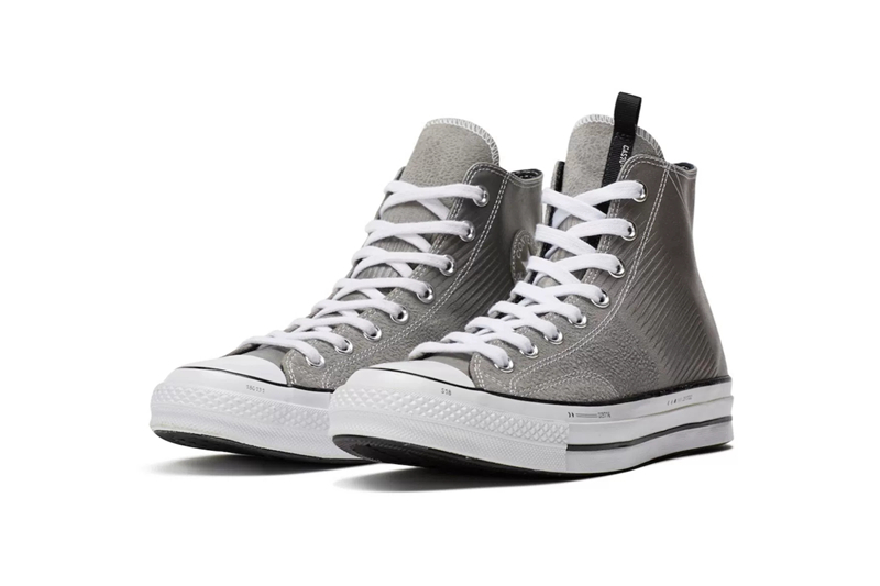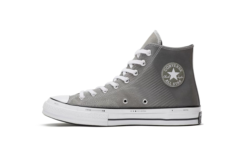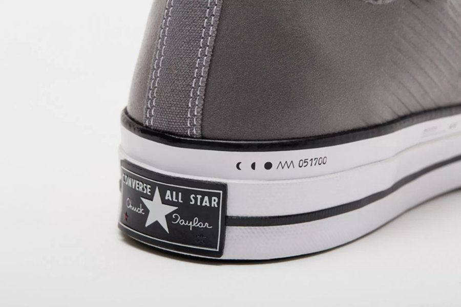另一组 “Lunar Pack” 天狗食月主题则选用了高帮的 All Star 1970s 作为蓝本,采用麂皮材质结合特殊纹理打造而成,营造出近似于月食的渐变质感。并融入与月食相关的数字、字母及月亮图案彰显主题,整体表现不俗!