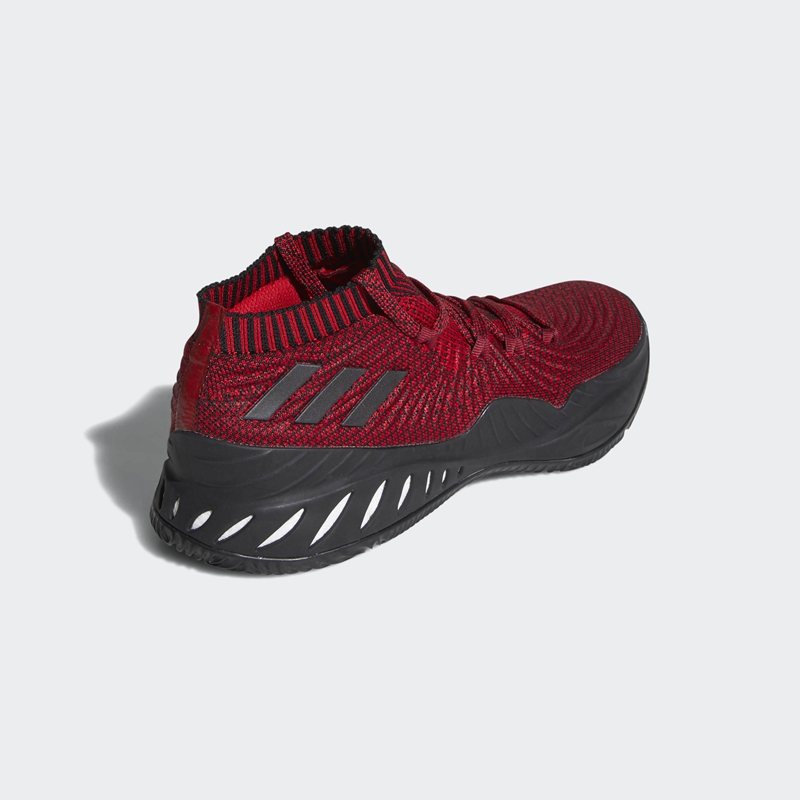 两双新鞋分别为迷彩主题的军绿配色和红黑配色,设计只是在 Crazy Explosive 2017 的基础上,降低鞋帮高度,依旧使用 Primeknit 编织鞋面和袜套设计,脚踝部位更加灵活更加清爽。