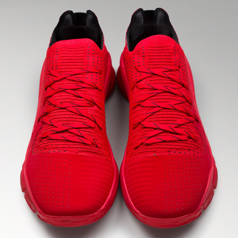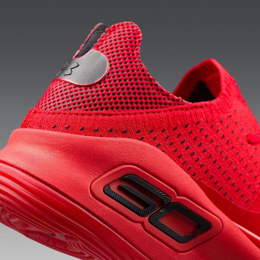 眼前由库里率先在训练场上脚的鲜红色 Curry 4 Low,同样名为 Nothing But Nets 配色,因为每卖出一双鞋,库里同样将赠送 1 顶蚊帐。