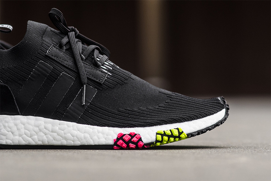承袭了 NMD 熟悉的轮廓线条,编织鞋面和全掌 Boost 中底提供了良好的运动性能。