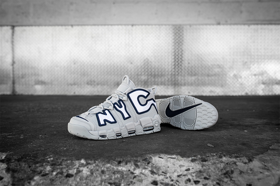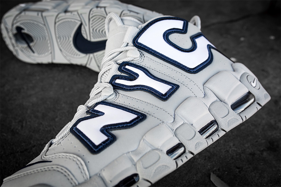 眼前的 Nike Air More Uptempo “NYC” 以硕大的 NYC 字样替换的 AIR 造型,浅灰色调的鞋身,呈现蓝边白字,清爽又时尚,让人耳目一新!