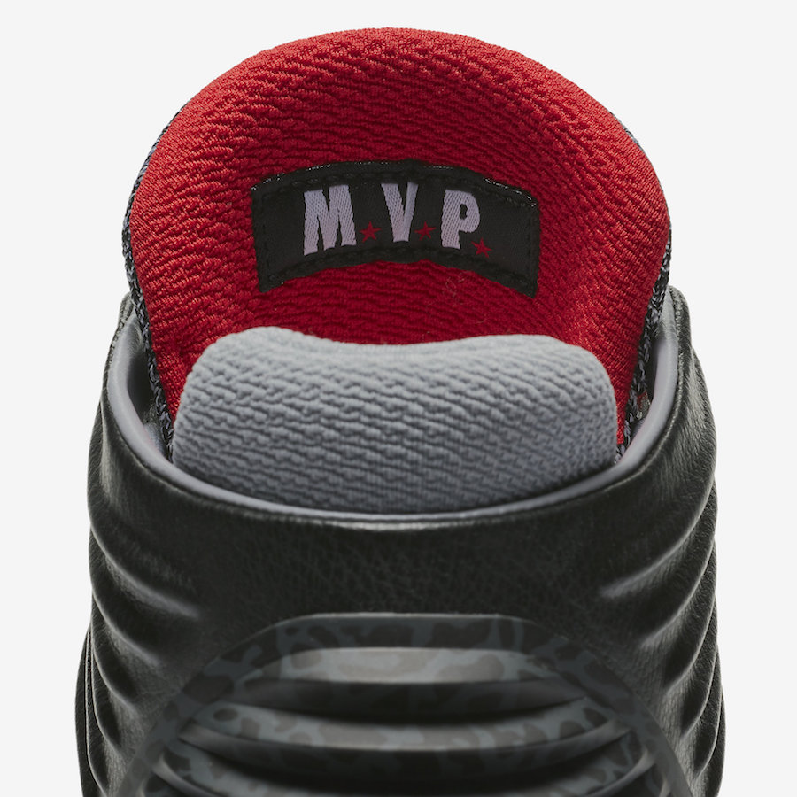 整体配色方案选用白灰雪花打造编织鞋身,细节辅以黑红双色点缀,与白水泥配色 AJ3 如出一辙。并在鞋舌内侧绣有 MVP 字样直击全明星荣誉主题,更精妙的是,AJ32 让人印象深刻的扇形后跟,暗藏 AJ3 标志性的爆裂纹图案,低调又暗藏精妙细节!