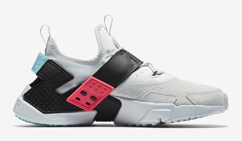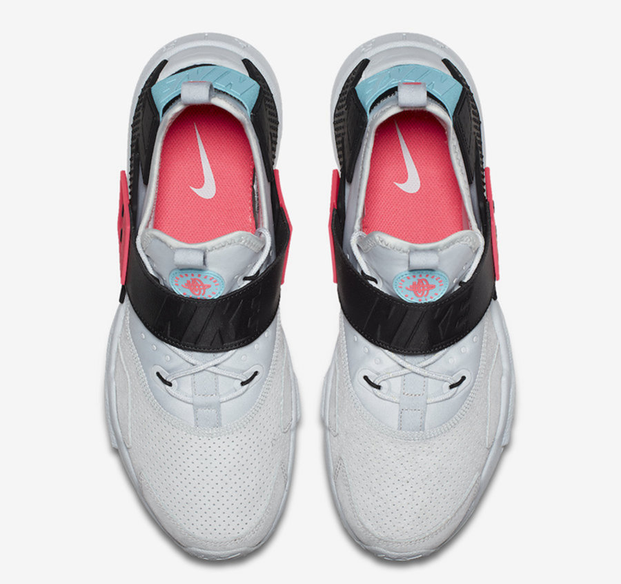 本次在 Air Huarache 经典鞋型轮廓基础上,特别增加了可拆卸的绑带设计及塑料支架加持。鞋身选用灰白装扮为主基调,辅以黑、粉、绿三种色调点缀,营造出清爽简约的 “南海岸” 既视感,上脚效果想必一定不俗!