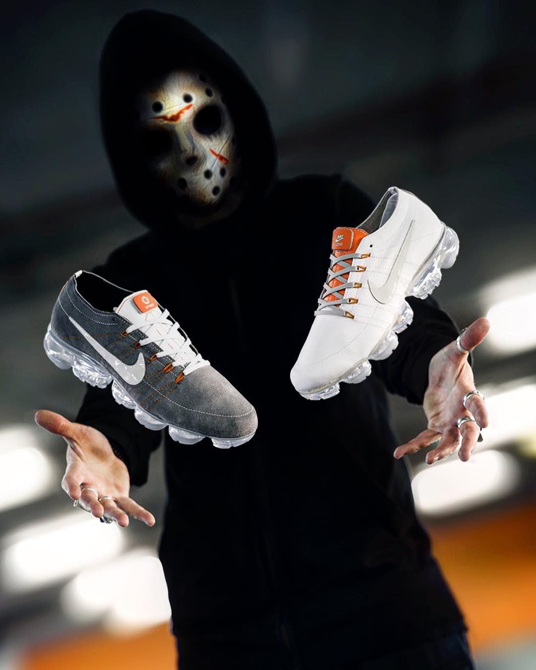 这双与知名球鞋设计师 John Geiger 共同打造的 Air Force 1,感觉像是 Travis Scott x Air Force 1 的前身,不同材质的 Swoosh Logo 铺满了鞋身,看起来有一种顶级联名的既视感。