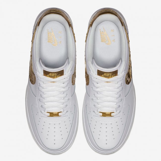 以纯白 Air Force 1 为蓝本,分别在鞋侧 Swoosh、鞋带扣、鞋舌及后跟特别添加了 C 罗标志性的金色元素加持,并在内衬及后跟处绣有 C 罗签名和 CR7 字样彰显不凡气质,极具纪念意义!