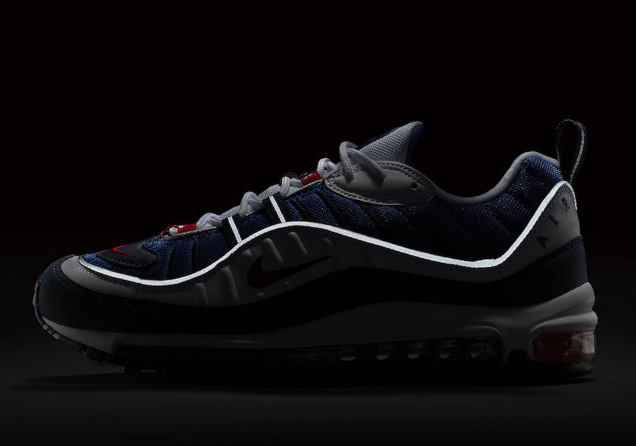 鞋款以红、白、蓝、黑四色为主调,因为与日本经典动漫 《Gundam》 中机器人的色调相似而得名 “高达” 配色,无论是 Air Max 98 的造型和配色都具有极为浓厚的复古风格。