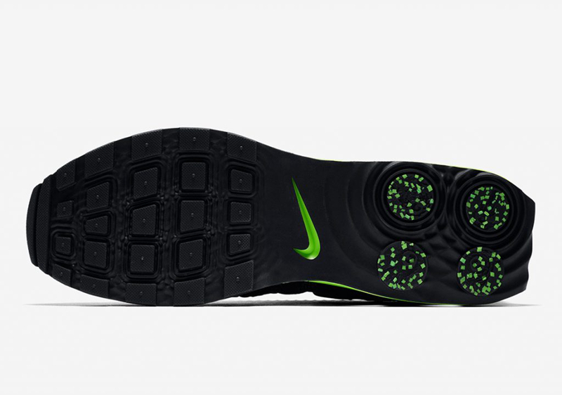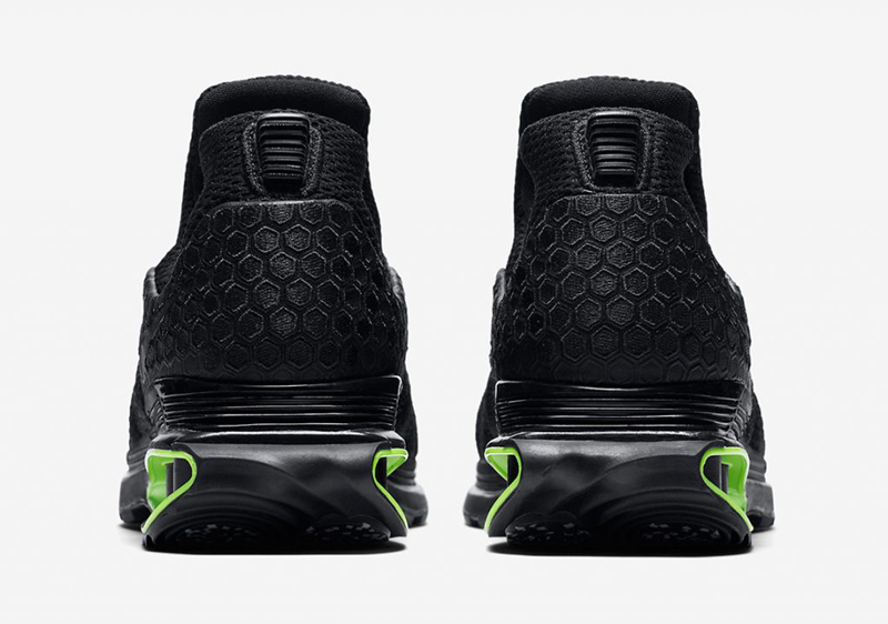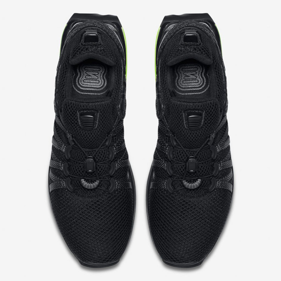 继早前正式推出了首发配色后,此番又迎来了一款全新配色的惊艳曝光,整体配色方案以一抹酷黑装扮为主基调,辅以青绿色调点缀细节,前卫的鞋身造型搭配 Shox 缓震科技,极具未来感!