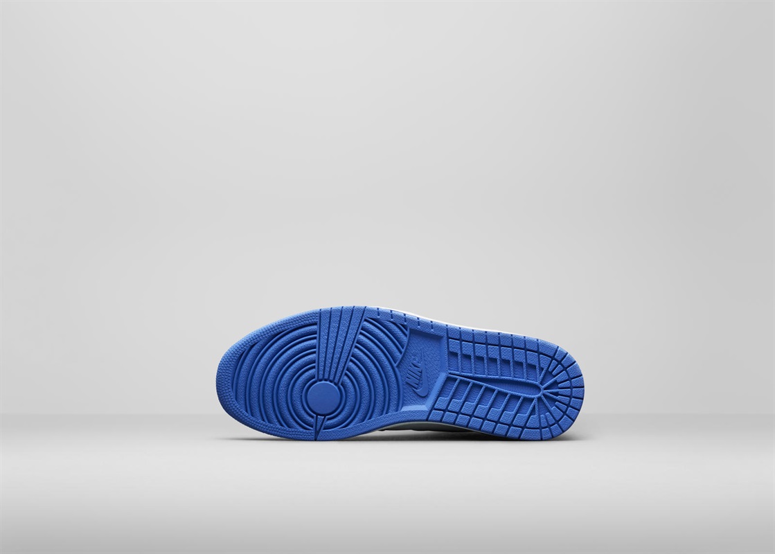 以经典的 Air Jordan 1 “Chicago” 配色为原型,使用白、蓝两色为主调,多处细节加入黑色点缀,与藤原浩联名也颇有几分相似之处。