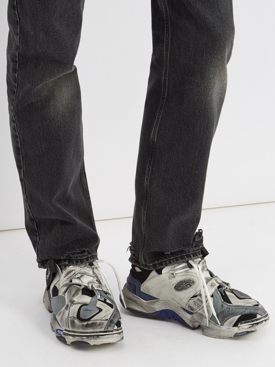 街头潮流品牌 Vetements 此前曾与 Reebok 展开过成功的联名合作,此番双方再度携手,带来一款全新配色的 Genetically Modified Pump 鞋款。 整体配色方案选用经典的黑白撞色为主题,辅以些许蓝色点缀细节,除了富有层次感的交叉绑带设计鞋面之外,浓厚的做旧手法设计依旧是该鞋款的最大特色! 目前这双全新鞋款已经登陆 Matches Fashion 线上店铺上架发售,定价为 ¥7880 RMB,部分码数仍有少量库存。
