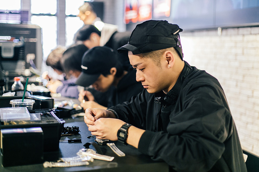 而各路潮人们更不会放过这次机会,纷纷在活动首日来到现场,亲自体验 G-SHOCK 定制的魅力,G-SHOCK STORE 也借此展出了 Tizzy T、MC HOTDOG、GOSH 厂牌的定制手表。