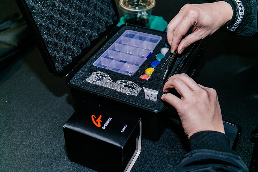 除了定制专属图案,还利用了 G-SHOCK 燥梦工作室期间限定工具箱,在手表上进行一番创作。