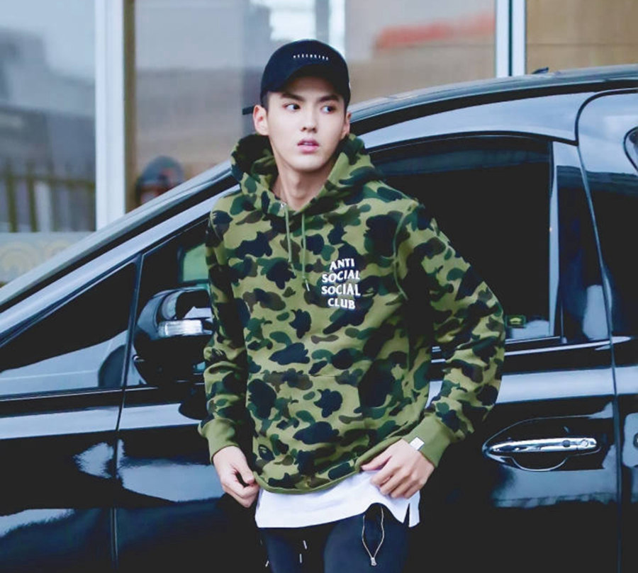 吴亦凡上身的 ASSC x BAPE® 联名款有着浓厚的军事潮流风范,也是迷彩中的百搭款式,简单素雅而又不失内涵品味!