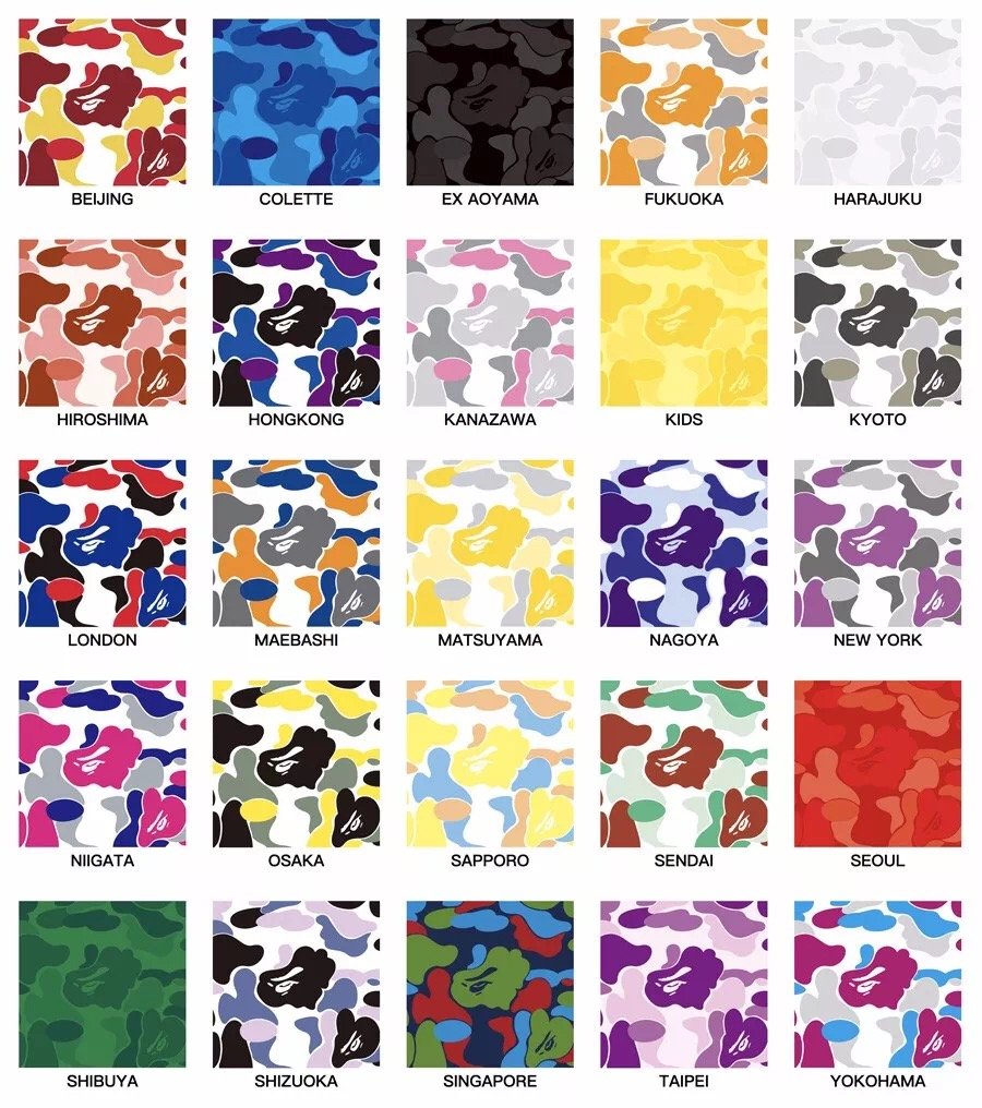BAPE® 几乎也是全球开办实体店铺最多的潮流品牌了,每每进驻一个城市,都有结合当地特色打造专属迷彩图案。