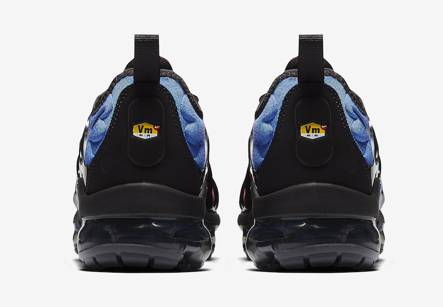 这双全新鞋型的设计竟经典鞋款 Air Max Plus 的鞋身轮廓与 VaporMax 气垫大底相结合,配色以红蓝过渡的鞋面搭配黑色细节与气垫,同时鞋面加入 3M 反光细节,兼具舒适度与时尚感。