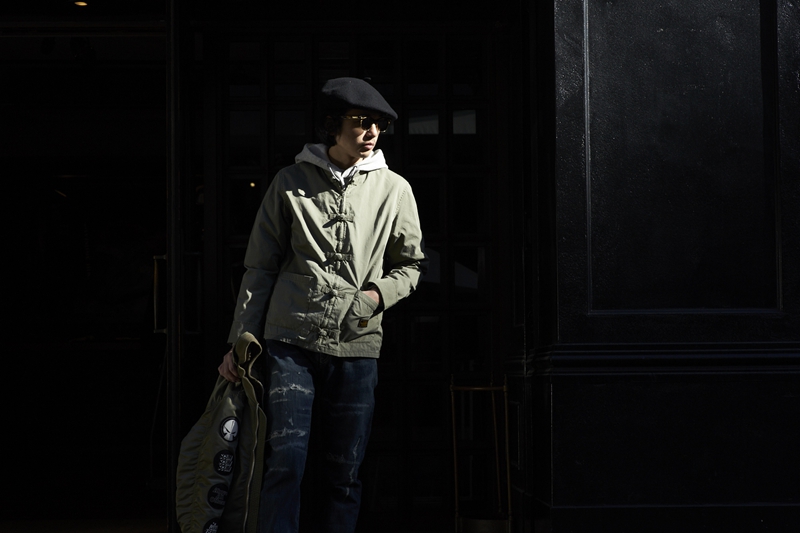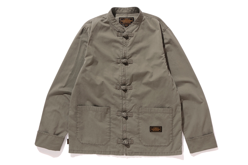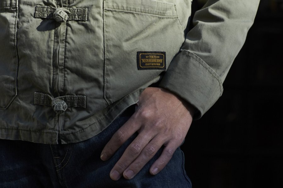 而为了庆祝此次 9 周年活动,特意为军绿色唐装设计独立车章,NEIGHBORHOOD 设计师泷泽伸介就以此打造出一件独一无二的唐装单品!