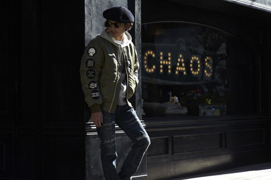经典的美国空军夹克 MA-1 外套,将军事风格和机车元素结合,两边的袖子上绣有极具机车风格的趣味臂章,精致的做工则延续了品牌与日系潮流一贯的良好传统。